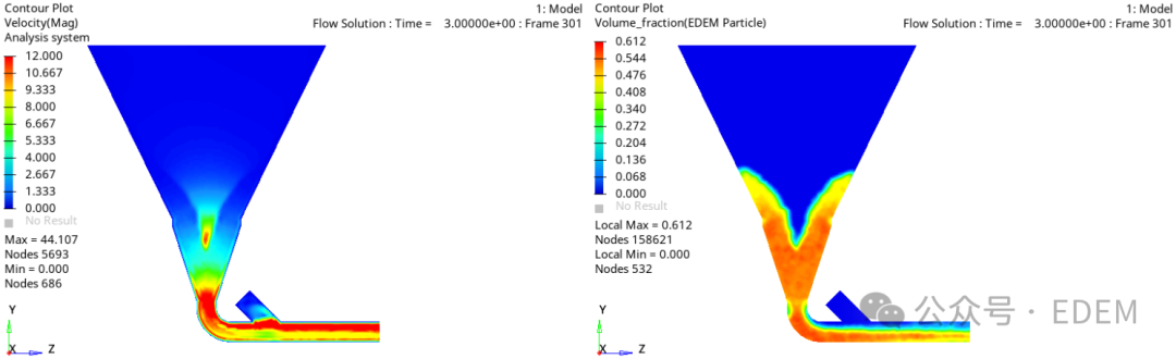与Novo Nordisk合作对气力输送系统料仓供料过程进行建模,目的是将系统性能与压降和粉末流动性联系起来。使用 EDEM-CFD 双向耦合建模方法对气力输送等多相系统进行数值模拟分析,其中,在EDEM中分析散装固体流,在CFD中分析气流。EDEM-CFD耦合仿真,气力输送系统料仓供料过程