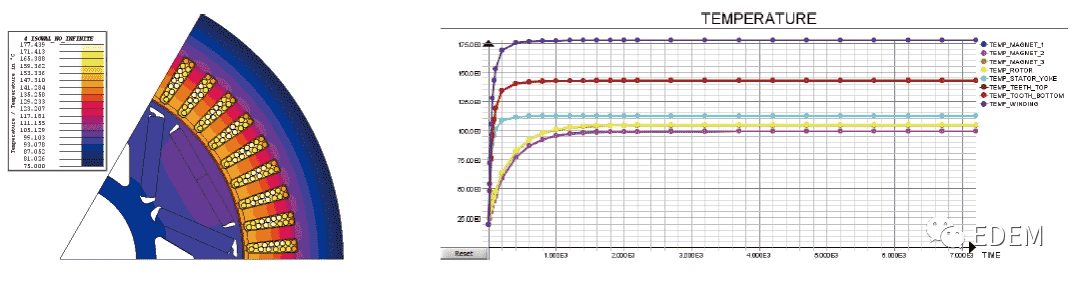 电磁-温升散热分析:电磁损耗会以热量形式在电机内释放并导致温升,两种物理场之间存在热动力学耦合关系。多物理场仿真可以精确预测电机的温升特性和散热情况,实现对电机温度的准确控制。