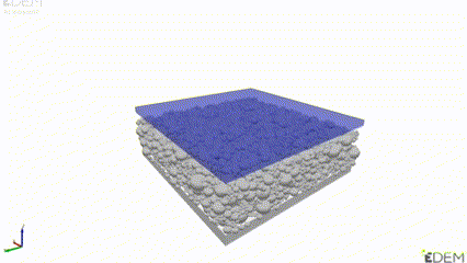用EDEM创建不同材料颗粒模型,由于代表性体积很小,我们可以将碾压过程近似为平板。微观结构逐渐被压缩,最后消除压缩力,允许回弹。