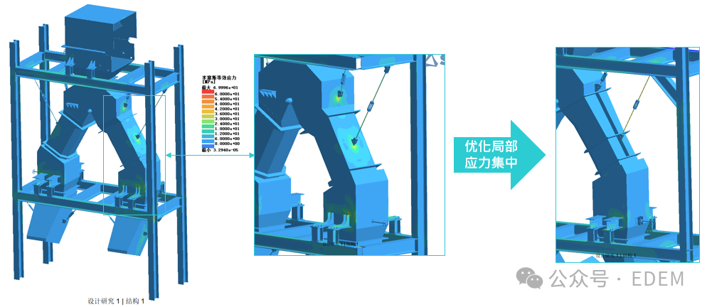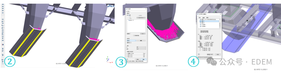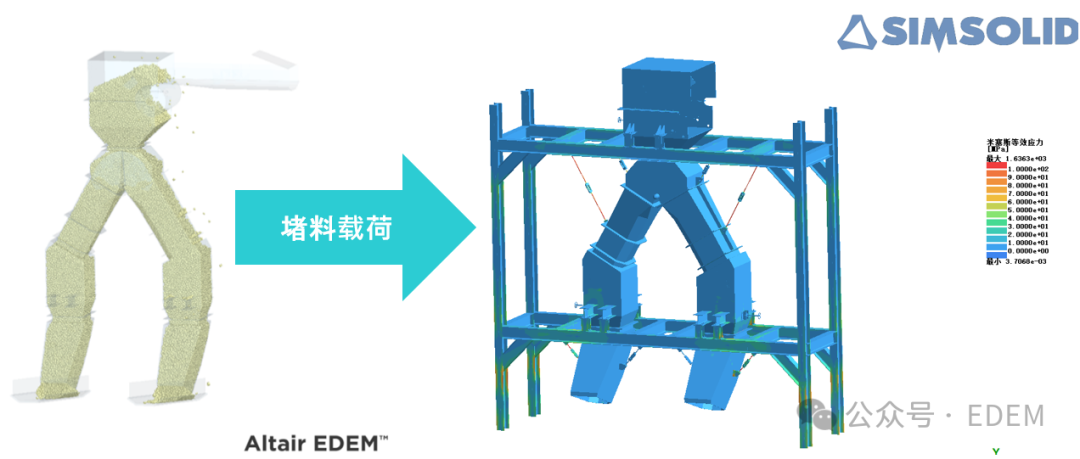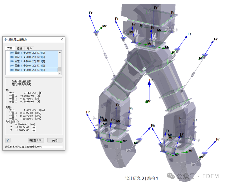 EDEM-SimSolid联合仿真可以计算支反力数据,用于支撑点结构和连接件的设计及强度校核。
