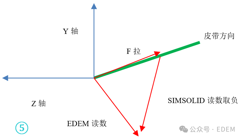 • 皮带移动过程受力看作瞬态,根据向量图计算可得该堵料工况下皮带方向总拉力。